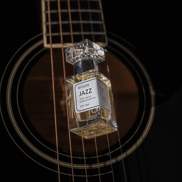 JAZZ – elegantiškas ir universalus unisex aromatas, kuriame susilieja gėlių subtilumas, vandens gaiva, švari mediena ir šiltos dervos. Gaivios viršutinės natos pereina į jausmingą jazmino ir medienos širdį, o kvapą užbaigia ilgai išliekanti frankincenso ir santalo bazė.